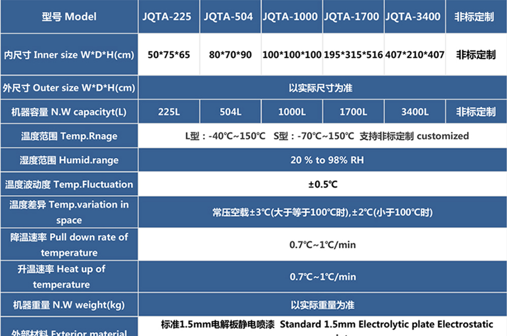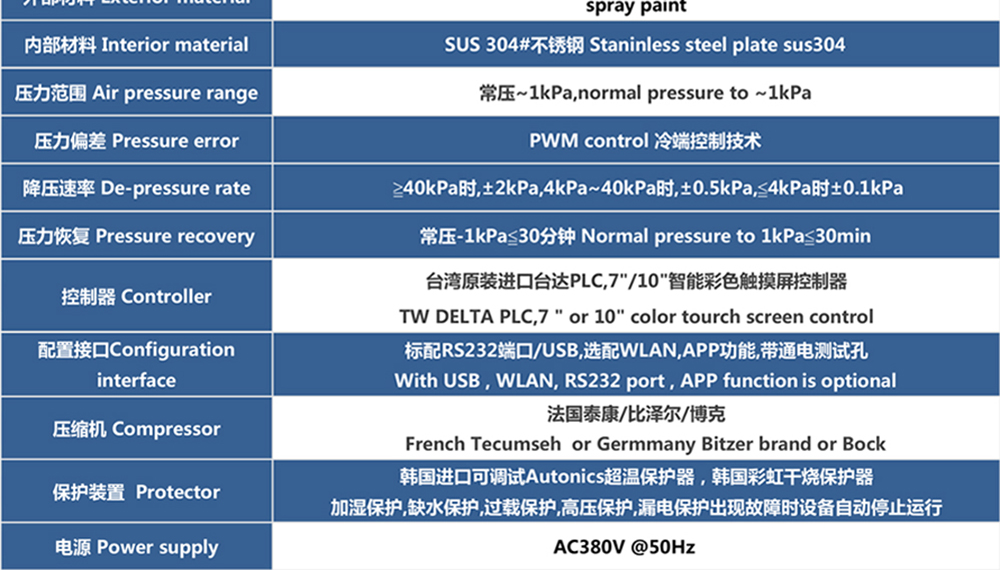 • 新款高低溫低氣壓試驗箱參數表