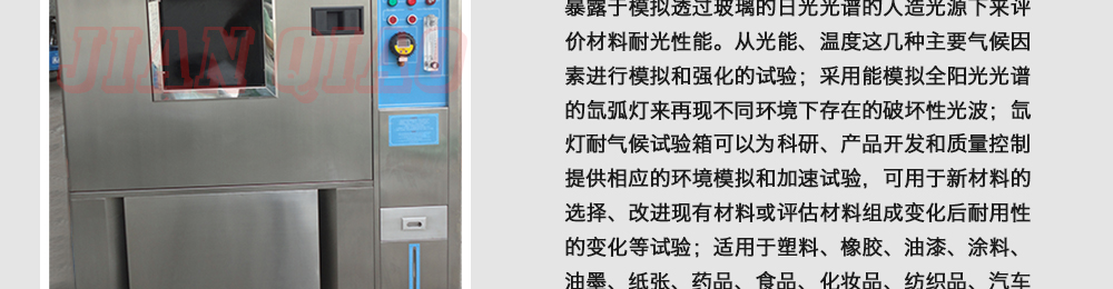 產(chǎn)品型號:JQ-3F-100 品牌:劍 喬 用途:氙燈老化試驗箱,氙燈耐候試驗箱,氙燈光老化試驗機(jī)是一種綜合氣候試驗裝置,除進(jìn)行氣候老化試驗外還可進(jìn)行高分材料的耐光性的測試,即高分子材料暴露于模擬透過玻璃的日光光譜的咨詢熱線:13829135130