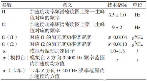 模擬運輸臺的設計參數主要依據《QJ/T 815.2-94產品公路運輸加速模擬試驗方法》[3]設定。該標準中規定了模擬運輸臺的關鍵技術指標,見表1。